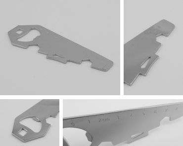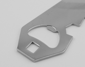 FARBDOSENÖFFNER NR. 7299-E zurück zurück vor vor Maße / Material:		ca. 11,7 cm, Stahl vernickelt Funktionen:			Farbdosenöffner / Lackdosenöffner, 3 verschiedene Öffner für Farbdosen, Vierkant,  10-er und 13-er Schlüssel, Lineal mit cm oder inch, Laschenöffner, Flaschenöffner  MADE IN SOLINGEN/GERMANY